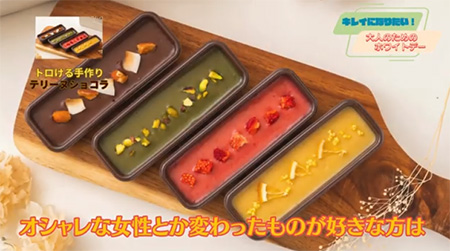 採用 100% 植物成分製成的無麩質健康甜品。使用具有濃鬱可可香氣的巧克力,並與濃鬱的豆漿一起揉捏,賦予其乳白色的質感。口味從簡單的可可口味到酸甜水果口味。這款巧克力美味可口,外觀可愛,非常適合獎勵甜點。